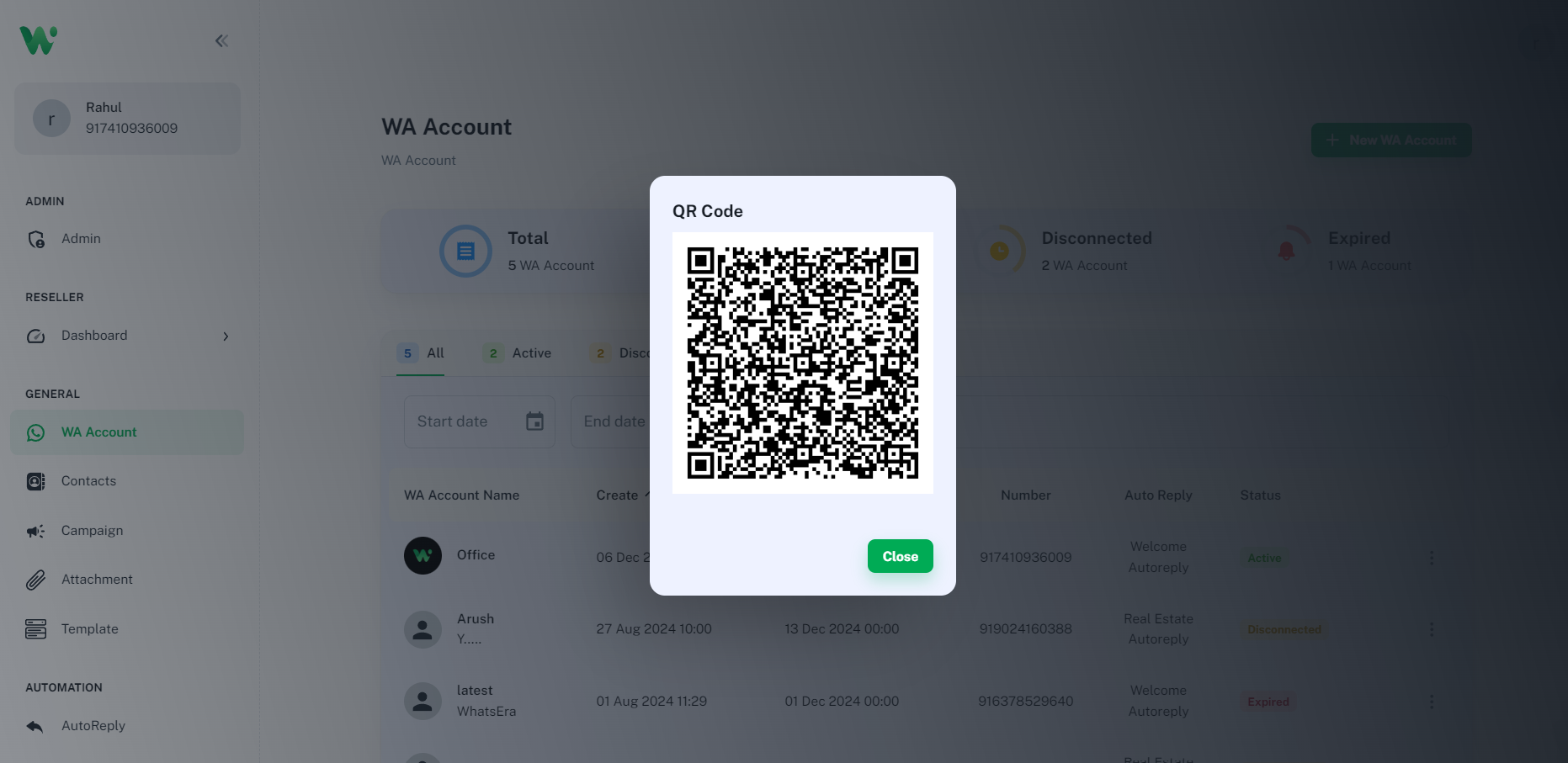 • Once scanned, your WhatsApp account will be added to WhatsEra.