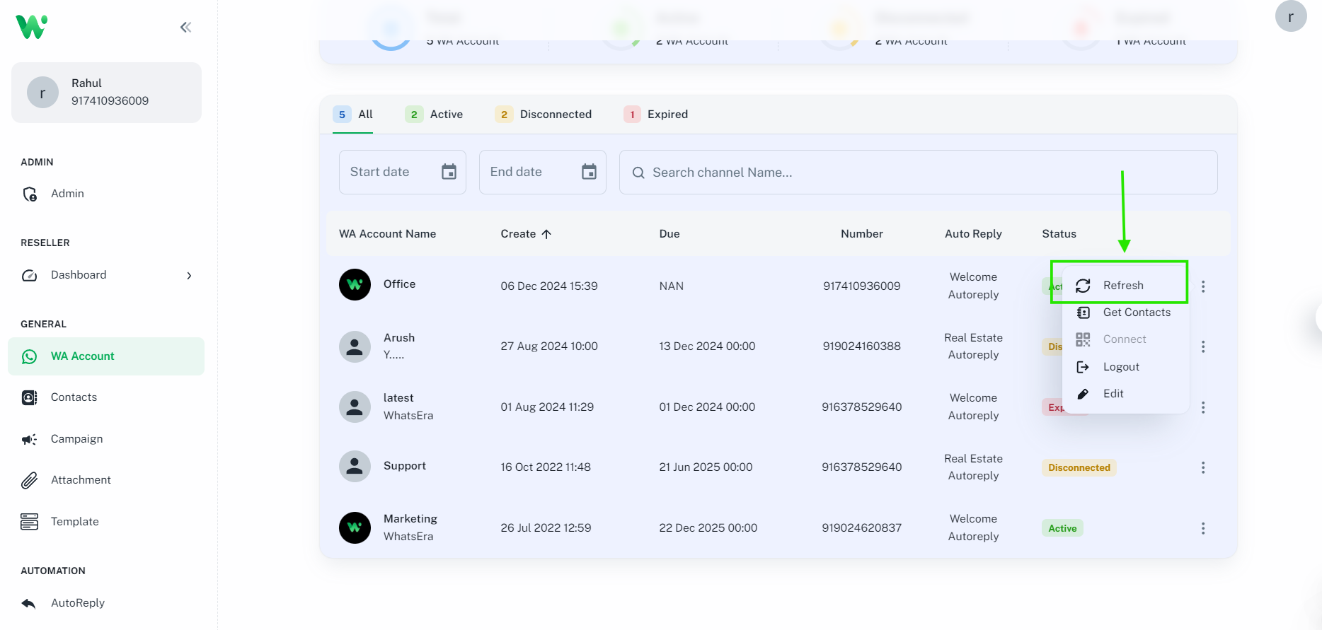 If your WA account status shows as Disconnected, none of the WhatsEra features will function for that account.