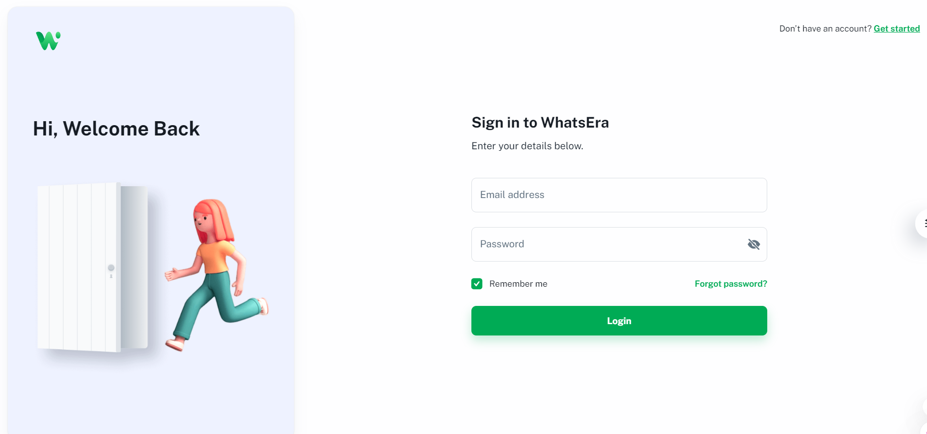 After successfully registering, you can log in to your WhatsEra account anytime.
